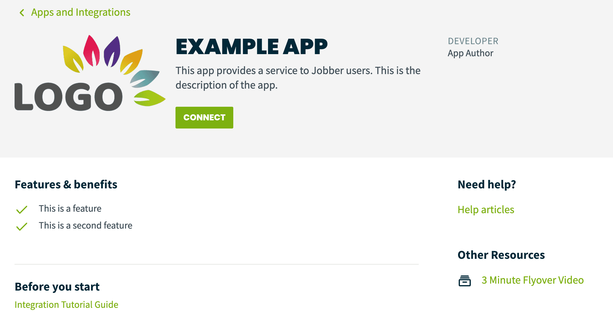 Note: the details for the “Need help?”, “Other resources”, and “Before you start” sections can be configured after submitting an app for review.